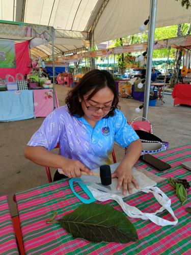นายกันตภณ หมื่นจิตร พัฒนาการอำเภอหนองบัวแดง มอบหมายให้นางสาวภัทรวดี ศิริโสดา นักวิชาการพัฒนาชุมชนปฏิบัติการ นำทีมผู้ผลิต ผู้ประกอบการ OTOP ที่มีฝีมือในการมัดหมี่ มาร่วมแข่งขันมัดหมี่ลายอัตลักษณ์ประจำจังหวัดชัยภูมิ “ลายหมี่คั่นขอนารี” พร้อมทั้งติดตามสนับสนุนการดำเนินงานผู้ประกอบการOTOP อำเภอหนองบัวแดง